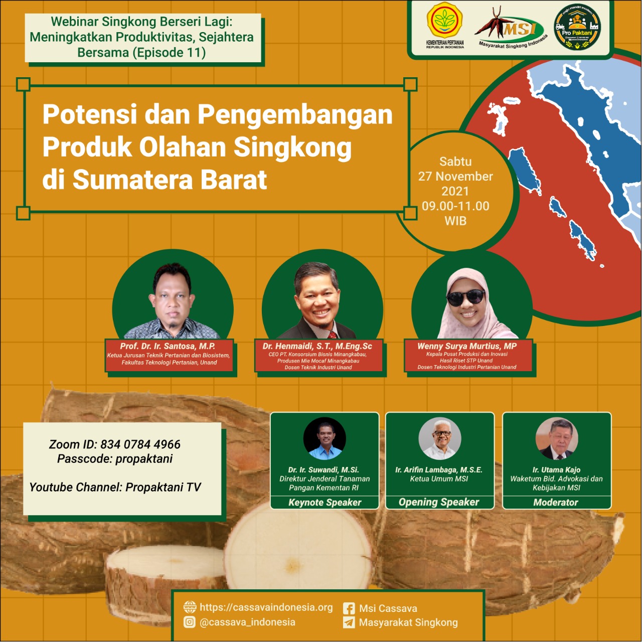 Link Youtube Webinar : Potensi dan Pengembangan Produk Olahan Singkong di Sumatera Barat – YouTube